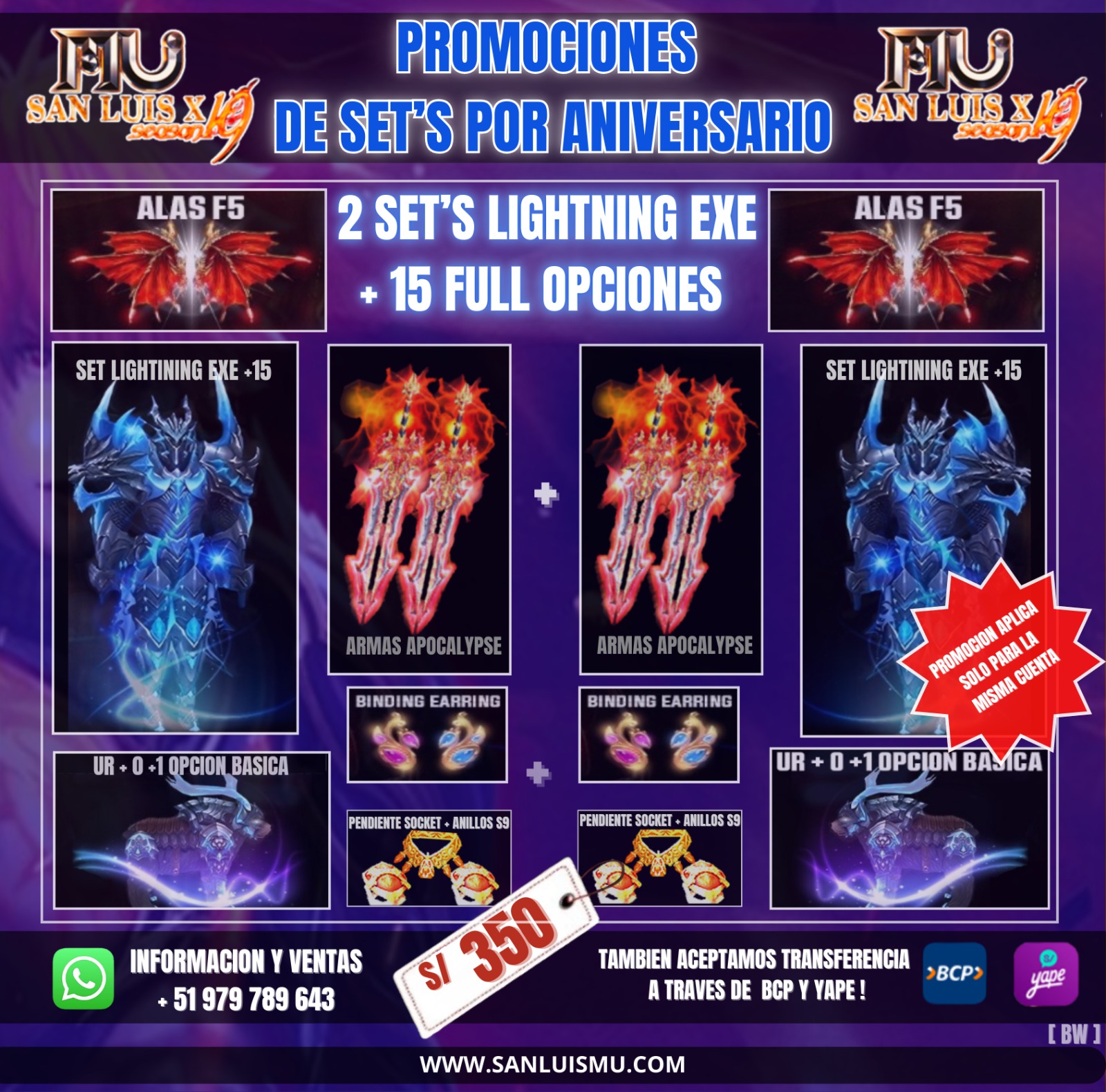 OFERTA 2: ADQUIERE 1 SET y LLEVATE EL SEGUNDO SET A MITAD DE PRECIO. (Aplicable solo para una misma cuenta)